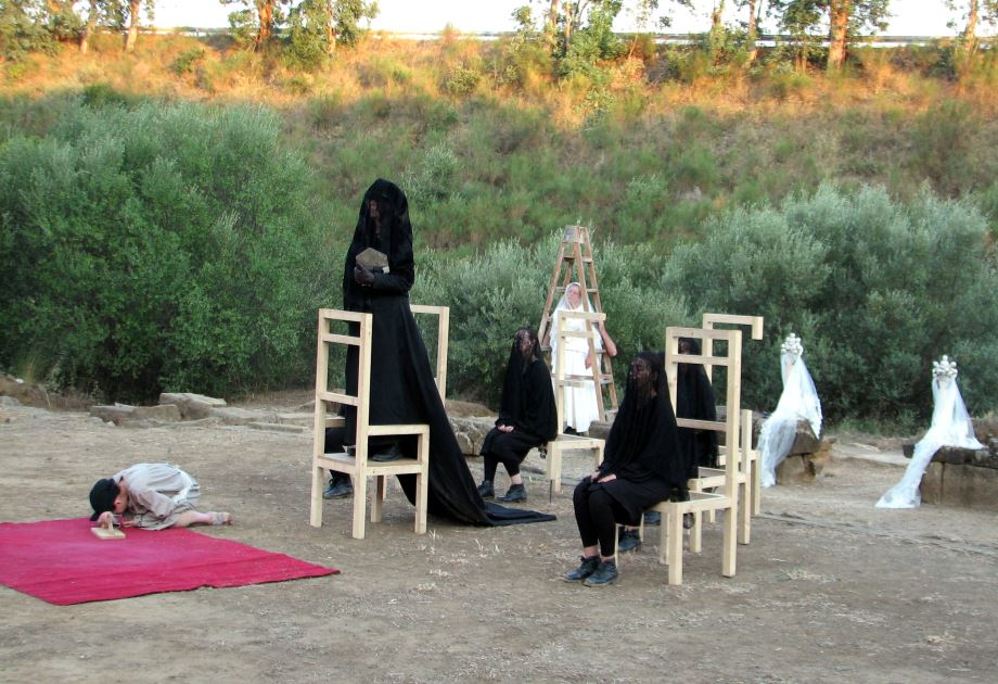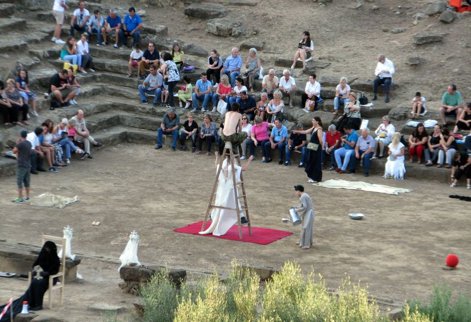 Η παράσταση θα πραγματοποιηθεί στα πέντε αρχαία θέατρα του νομού Αιτ/νίας (Καλυδώνα, Πλευρώνα, Οινιάδες, Μακύνεια και Στράτο) μέσα στην ίδια εβδομάδα στο πλαίσιο προβολής και ανάδειξης των αρχαιολογικών χώρων της Π.Ε. Αιτωλοακαρνανίας και συγκεκριμένα των πέντε (5) αρχαίων θεάτρων.