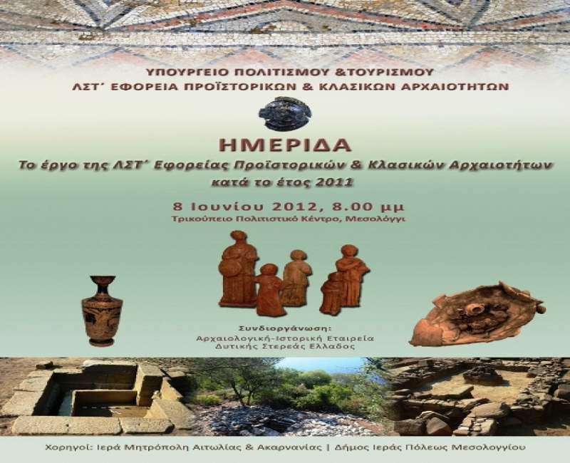 Πολιτιστικό Κέντρο του Δήμου Ι.Π Μεσολογγίου με θέμα : To έργο της ΛΣΤ’ Εφορείας Προΐστορικών και Κλασικών Αρχαιοτήτων κατά το έτος 2012.